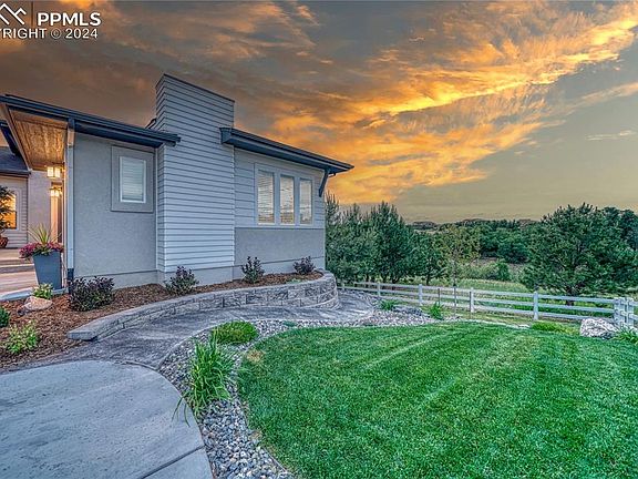 Stunning ranch on private lot w/ 270 degree views of gorgeous open space, Air Force Academy & Front Range. Likely the best lot in The Farm with no neighbors on 3 sides. Nearly every inch of this home has been remodeled making it fully custom. Modern curb appeal. Custom colorful landscaping w/ new perennials, new shrubs, & stamped concrete path to the side and back. New & upgraded front door. Open floor plan w/ light hardwood flooring, high ceilings, iron railings, new light fixtures, fireplace w/ stacked stone & live edge walnut mantle, built-ins, office w/ window seat, built in book shelves, & frosted glass dbl doors, dbl sliders to the composite & covered deck w/ sun shade, & addition of a large picture window to enjoy the views. Fully remodeled Gourmet kitchen w/ high end Dekton counters, custom designer tile backsplash, refinished cabinets w/ modern hardware & a glass inlay, upgraded Kohler sink, Moen faucet, on-demand hot water dispenser, dbl ovens, newer high end 36” KitchenAid gas range w/ modern hood, upgraded and built in KitchenAid refrigerator, walk in pantry, coffee station, additional cabinets for storage, and walk-in pantry. Master suite w/ upgraded carpet & walk out door to deck. Spa master bath w/ tile, quartz counters, spa shower w/ tile, new light fixtures, new mirrors & hardware, soaking tub, quartz counters, and new make up area w/ quartz counters, large mirror, and light fixtures. 2nd junior master suite on the main level as well. Walk-out basement with 9 ft ceilings & walk out to a large patio w/ hanging chairs, turfed backyard, tall trees for privacy, and custom water feature. Another junior master suite, and custom updated baths with tile flooring, quartz counters, & framed mirror. Climate controlled storage & secure wine and spirits room. Zen Garden patio on the side w/ pergola & privacy. Land around the home can never be built on & offers walking/running trails. Clubhouse-Gathering place for swimming, exercise, & fishing/paddle board ponds.