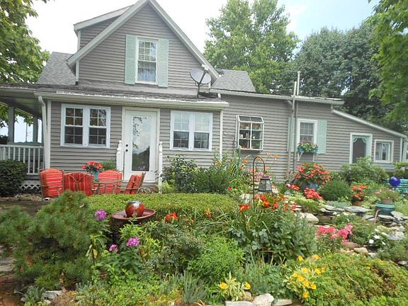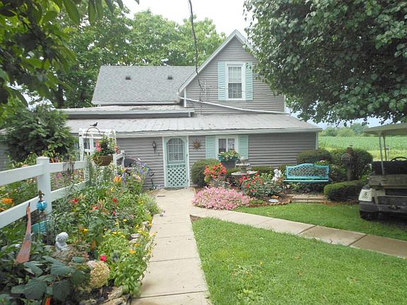 Picturesque farmhouse and a fairy tale setting. This home invites you to come in and soak up the charm in any room in the house. 4 BR, 2 BA, open dining room & living room, spacious kitchen with eating area, built-in cabinets/closets, sitting/tv room off master bedroom, natural woodwork, laundry, detached garage, lg. barn with wood shed, workshop, summer kitchen w/electric,gazebo, peach & apple trees, grape arbor, red & blackberry patches, gardens, mature trees, fish pond, beautifully landscaped 6+ acres. Beautiful setting you will love!