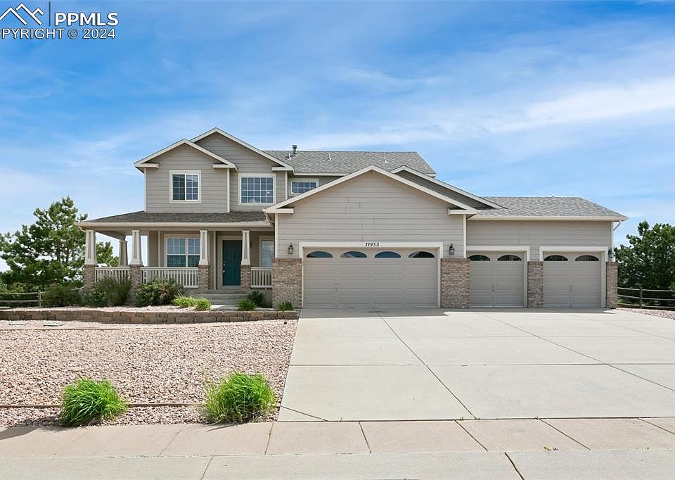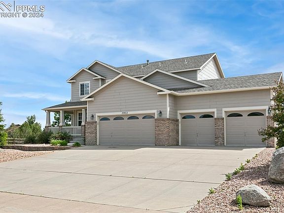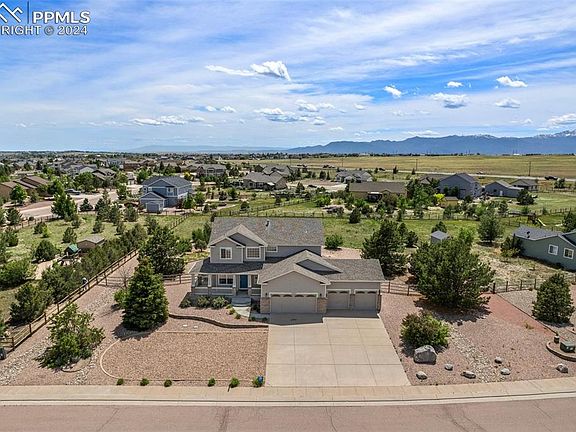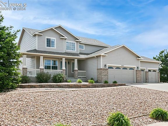 Welcome to this charming home nestled on a rare, almost 1-acre lot, in the heart of Woodman Hills. Upon entry, an elegant formal living area flows into the formal dining space, complemented by a bay window. The kitchen features stainless steel appliances, an open layout, and a cozy breakfast nook leading to a back patio with a gas stub-out. The adjacent great room is flooded with natural light from the many windows and vaulted ceilings, with convenient pre-wired surround sound. Continue on the main level to the convenient laundry room, powder room, and into the heated 4-car garage, 2 of which are oversized. Upstairs, the spacious master suite includes a luxurious 5-piece en-suite bath with double vanities, a walk-in closet, and sitting area with pre-wired surround sound. Two additional bedrooms and a full bathroom complete the upper level. The expansive unfinished full basement offers a blank canvas featuring four egress windows and pre-installed can lights. The exterior is equally impressive with views of Pikes peak and lush greenery including Austrian pine, piñon pine, plum, cherry, apricot, crabapple, lilacs, and aspen trees, along with xeriscaped yards, front and backyard sprinkler systems, a poured concrete patio, and a covered front porch. Don’t forget the professionally installed electrical hookup ready for a hot tub near the aspens. Nearby you will find community pool (2mins away) & golf course (5 mins away). Eateries nearby like Freddy's, Chipotle, Dutch Bros & more! And all this, offering an exceptional value for this gem!