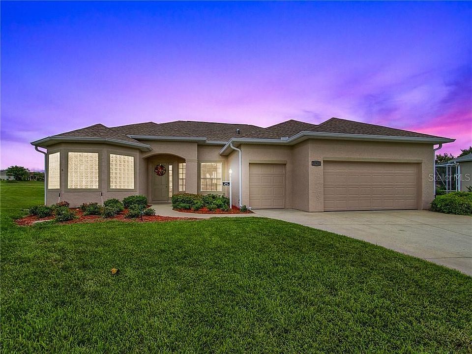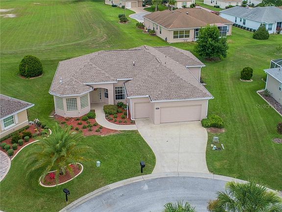 Stonecrest 55+ gated golf course community with all the amenities, 4 pools, clubhouse, recreational facilities, private roads, security gate 24 hours and access to The Villages by golf cart as this is a golf cart community. Fabulous San Marco model that has been EXPANDED IN THE FAMILY ROOM AND 3RD BEDROOM/OFFICE/DEN by 10 ft! NEW ROOF JUNE 2020, A/C 2017, NEW VINYL PLANK LAMINATE FLOORING IN THE 3 BEDROOMS. 2278 SQ FT under heat and air (typical model is 1990 sq ft). FRESHLY PAINTED INSIDE, oversized lanai freshly painted, built in book shelves with lovely enhanced wood molding. 2 master walk in closets in master bedroom, large picturesque windows throughout the home. 12" and 10 ft ceilings through out this majestic home. Located in a private cul de sac for low traffic and beautiful private back yard. Two car garage and golf cart garage. Inside laundry room. This home is ready for immediate occupancy. Do not hesitate on this one as we have the lowest interest rates and lowest inventory! A must see!