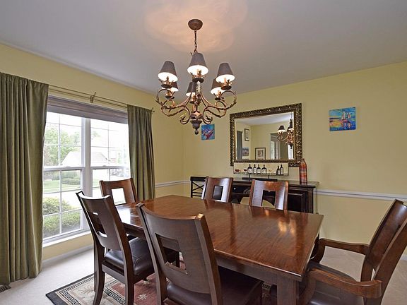 - Dining Room Feat: Chandelier, Chair Rail, WW Carpet, Window Treatment
