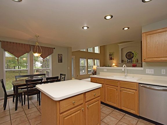 - Kitchen Features: Wood Cabinets, Window Treatment, Pantry, Island, Tile Floor