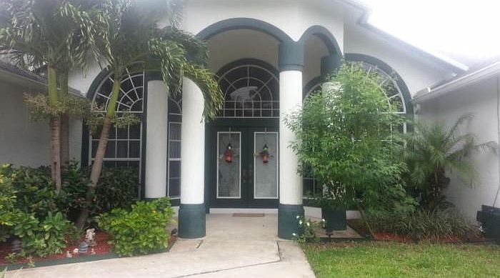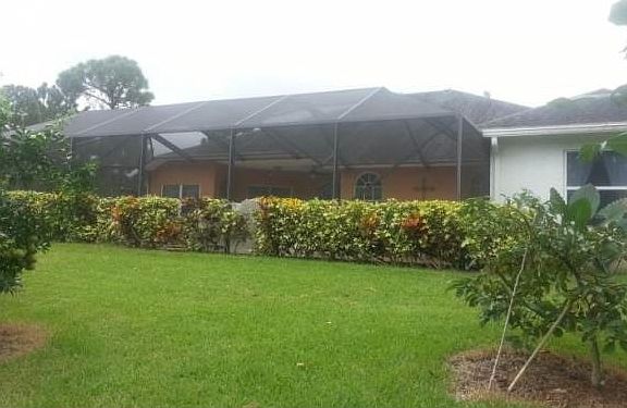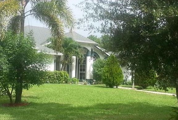 Pride of ownership shows throughout this fabulous four bedroom pool home offering a split bedroom floor plan, completely tiled throughout, huge master bedroom with sitting area & sliding doors leading out to patio/pool,large his/her walk-in closets, master bath has separate Roman tub & walk-in shower, also separate his/her sinks. Kitchen features white Corian countertops & lots of cabinet space. Large patio/deck with heated pool and spa, stone waterfall, and is fully screened. The fenced 1+ acre property offers a variety of fruit trees including Mango, Avocado, June Plum (Hobo), Jackfruit, Guinep, Pink Grapefruit and more, also has 27 oak trees! Don't miss out on this fabulous home. Note: This is a green home which means hundreds of dollars saved each year on utility bills