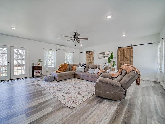MUST SEE! BEAUTIFULLY REMODELED FARMHOUSE STYLE 5 BEDROOM, 2 BATH HOME JUST MINUTES FROM ROLLA! Welcoming you in from the timber-framed covered porch is a sizable dining room filled with natural light flowing into the huge living room featuring an electric fireplace, sliding barn doors, and French doors leading to the back deck overlooking the fenced-in portion of the backyard. The gorgeous kitchen boasts a marble subway tile backsplash, stainless steel appliances, a ceramic sink, and a breakfast bar. Three impressive bedrooms and a full bathroom are rounding out the main level of this home. Downstairs you will find a non-conforming bedroom with no window, an additional bedroom, a laundry room, and a full bath. This home is perfectly situated on approximately 1 acre with a wood foot bridge spanning over the wet weather creek and a fenced-in play area. The property is dotted with mature trees. Don't miss this! SCHEDULE YOUR PRIVATE SHOWING TODAY!!!
