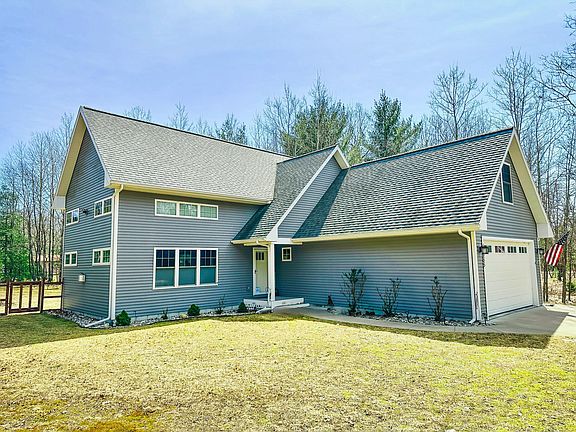 Introducing 11955 Majestic Hills Court nestled on the quiet northern side of highly sought after Higgins Lake. Built in 2016 this 2 bedroom 2 bathroom custom-designed home has much to offer, a large open concept central living room with a stone fireplace, vaulted ceilings and modern kitchen. The first floor primary bedroom has a main bathroom off of it with a built in sauna! Upstairs opens to a large loft with a full bath, a second bedroom and a bonus room offering plenty of room for family or guests. The home has a two car finished garage, ample storage and is wired for a generator. Natural gas available. Set on over an acre there is abundant space to build a pole barn and enjoy year round outdoor living. Close by is N. Higgins Lake State Park boat launch, sandy beaches and ORV trails!