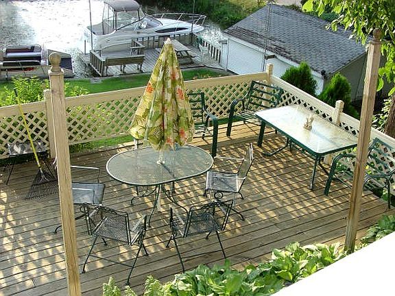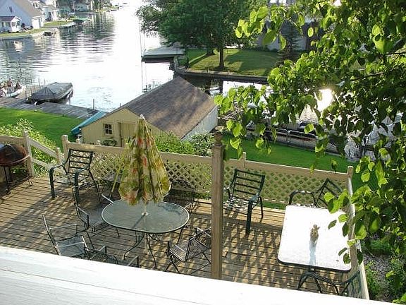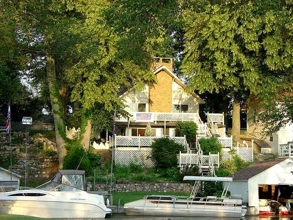 2 story home with walk out basement with 3 decks on lake side where you'll find yourself sitting out on watching fantastic sunsets and great views of Wawasee. Cathedral ceilings, sliding glass doors, oak cabinets, and a double faced fireplace. Huge loft that can be used for overflow sleeping. Boat house, 24 x 36 partly insulated garage, large lot with plenty of room to park and a very quiet area - great for kids to play.