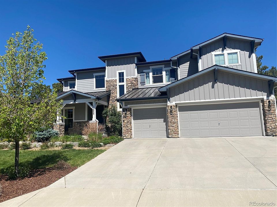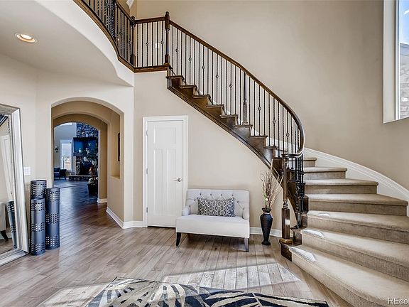 This is the home you've been waiting for! The popular Toll Brothers' Orion model is ready to go with over 150 K in recent upgrades reflecting the exquisite taste of the current owners. Features include engineered hardwoods, plantation shutters, motorized shades, window casings, custom doors, gourmet kitchen with upgraded stainless appliance package, granite countertops, custom backsplash and a generous pantry. Kitchen also has an extended island, bar seating, pendant lighting and separate breakfast nook. There is a main floor bedroom with an en suite bath. The impressive two story great room with stone fireplace, accent beams and two walls of windows really sets the tone for this beautiful space. The spiral staircase in the entry and a second staircase in the great room provide easy access to the upstairs bridge leading into a spacious master bedroom with private deck and mountain views, huge custom closet, en suite bath with an extra large soaking tub and separate shower, double sided fireplace, sitting area, coffee bar, and even a purse and shoe closet. A loft, which makes a great home office, and two additional bedrooms round out the second floor. The property has a professionally finished basement and several recreation areas, stone pillar walls surrounding a full bar, two additional bedrooms, a large bath, plus second laundry room. Tons of storage throughout. The fenced backyard space is incredible! So many features you'll have to see to believe. Outdoor granite bar, built-in grill, private screened dining area, three sided patio room with motorized privacy screen and large, lighted water feature that creates the essence of a mountain stream. There is also a pathway that leads to a large shed adding even more storage. All of this is nestled in the huge pine trees that make Pine Bluffs a popular place to be...and only a mile from the cute little downtown Parker area. Hurry, this one won't last!!!