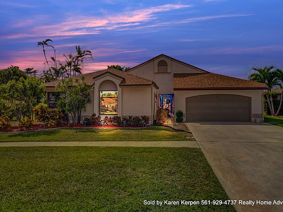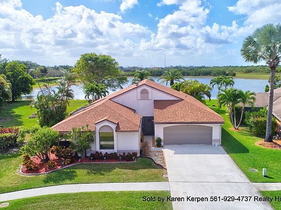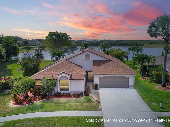 Wow!! Amazing home, that has been meticulously maintained by the original owners really has it all! This move in ready home is on a very special lot! 4 bedrooms, 2 baths, large pool with pavers & fabulous views of the largest part of the lake. Waterfront home maybe the largest lot in all of Country Landing with almost a half an acre on a cul-da-sac!! The lot is over 18,000 square feet(.41)! Open & bright with vaulted ceilings & abundant amount of sliding glass doors & windows for tons of natural light. And did I mention "VIEWS!! VIEWS!! VIEWS!! Updated kitchen w/granite countertops, stainless/black appliances, tumbled marble backsplash, granite pass thru counter tops to patio/pool area & newer wood cabinetry with tons of extra storage including a pantry. Tile flooring on a diagonal in the living areas & carpet in the bedrooms. Master bedroom has very high end/brand new carpet in the "sand" color to feel like your at the beach & a huge walk in closet. Great master bathroom that leads to a paver lanai area. Enjoy incredible sunsets every night from almost every window. Huge paver patio w/custom screen that has a remote. Push a button to have it go up(screen on) or push a button and have it go up(screen off) off pool area. The paver patio leads to the separate additional screened in patio on the side of the house, off the dining & off the family room. This backyard offers not only amazing views of the lake and nature preserve but also you get total privacy. Many outdoor eating areas. Passive Park just past the lake. Aluminum fence that you can see through this elegant fence to the water surrounding the property. The sprinkler feeds off the lake so low water bills. Huge driveway can fit at least 6 big cars. Inside laundry room. 2 car garage w/bonus storage area w/newer hurricane garage door. Newer roof 2006. Located in the Estates of Country Landing where there's only 27 homes nestled on the edge of the nature preserve & South County Regional Park. Low HOA fee $73 month/includes several parks w/baseball/basketball/tennis/playground/tot lot/nature trails/24hour roving security plus MORE! Great schools! All ages & pet friendly. Sold by Karen Kerpen/Realty Home Advisors 561-929-4737