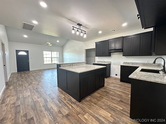 Brand New Barndominium at Lakeside Trails. Home is 3 bedrooms, 2 bathrooms, boast open floor plan, custom tile accents, beautiful large kitchen with several cabinets and granite countertops, full length front and back covered patios, and attached 20x30 shop building. Just blocks to the sandy beaches of Lake Texoma and Sander's Island View boat ramp!