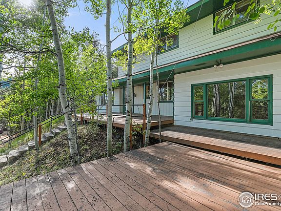 Nestled in Coal Creek Canyon, Colorado amidst towering spruce and aspen trees this mountain home offers 4 bedrooms / 3 bathrooms, plus an office at an incredible value! Privately set on 2.15 acres, this 2 story home is ready for your vision in this prime location within a short commute to the metro area but a world away from the hustle & bustle of city life. Enter into this spacious floor plan that greets you with beamed & vaulted ceilings and an oversized living room featuring a cozy woodstove insert and numerous windows that capture aspens in this serene setting. A huge country-style kitchen with ample counter and cabinet space has an eat-in dining area and includes a pellet stove that provides extra warmth & ambiance. The separate dining room adjacent to the kitchen can also double as a main level office with a 1/2 bath and laundry room conveniently located just around the corner. Spend time in the huge bonus workroom located just off the kitchen that could be improved to make a separate family room or use it as originally purposed: a work room with plenty of space for tools and projects. Upstairs find 4 bedrooms, a dedicated office and a full guest bathroom. Also on this level, the primary bedroom has an ensuite 3/4 bath, plus 2 large closets. Great peace of mind with a boiler system that is only 4 years old and a newer water heater. There is a 10x12 shed that can store all your outdoor gear with a level parking area. Located only 19 miles from Golden or Boulder on mostly all paved roads, this peaceful mountain sanctuary is just a short commute away from all the conveniences of city life. House needs some updates & TLC, but is very comfortable living in its present condition. Estate sale, sold 'as-is'. Furniture & snowblower are negotiable.