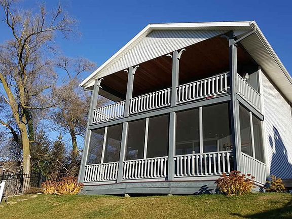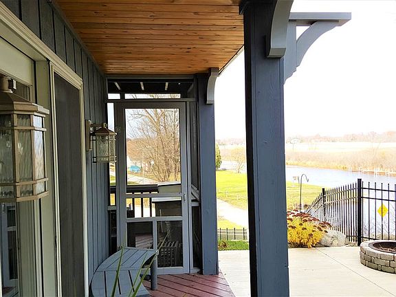 Wonderful Lake Wawasee & wetland views from this hilltop beauty's two screened porches & private outdoor patio off main living spaces. 50 feet of channel organized as your very own, reserved bay makes waterside activities a breeze. Gorgeous laminate flooring throughout main living areas & beautifully tiled kitchen, breakfast room & bathrooms are both stylish & easy to maintain. Stainless appliances are included & are highlighted by elegant cabinetry & striking back splash. The master suite spans the width of the home's facade, yet remains comfortable& inviting along with two ceiling fans & two double-door closets.Furnishings are negotiable.