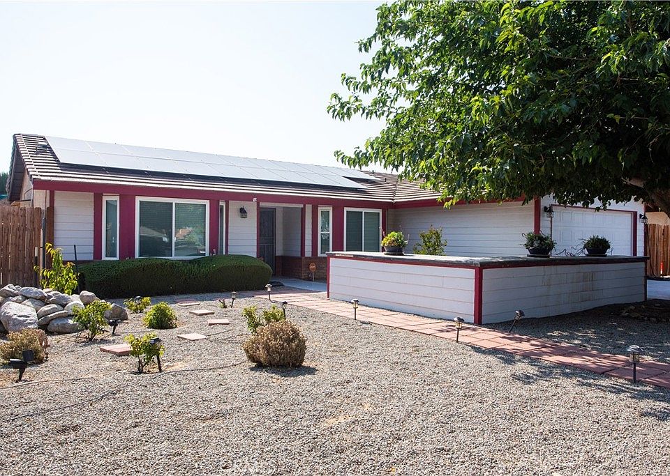 BEAUTIFUL POOL HOME!!! This charming 3-bedroom, 2-bath home, with plenty of land, and beautiful backyard pool oasis is available just in time to enjoy before the summer ends. This home features a spacious open kitchen/dining room complete with woodburning fireplace, display case, pantry, bar, kitchen island with seating area, pendant lighting and double-French-doors leading to the back pool area. The large windows allow for an abundance of natural light. Cooling can be accomplished with Central Air or evaporative cooler. All bedrooms have ceiling fans including the rear patio cover. The backyard is a magnificent private retreat that is beautifully landscaped. Enjoy the heated pool or spa at night with overhead and landscape lighting. A patio cover runs along the complete backside of the house allowing ample shading for entertaining. The covered patio includes overhead lighting, a bar complete with sink and storage. The south side of the house has great RV parking! There are several storage sheds giving you plenty of space to organize your belongings without leaving them outside and unprotected. Beyond the fenced back yard there is ample space open for your imagination!