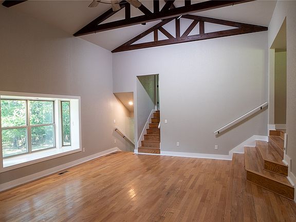 Beautiful stone and cedar home with unique floor plan, fully remodeled and fun, sitting on 1.38 Acres! Features in the 2,482 SF include 4 levels (no more than 5 steps to each level), 5BR/3BA and a 20-foot native stone fireplace in the supersized family room. Private master balcony is spacious, and the lower-level patio is covered with ample room for a hot tub. Large yard and a detached garage with a shop area. Additional storage unit not even 5 minutes to Prairie Grove town. Completely remodeled with new windows, flooring, paint, baths and more!