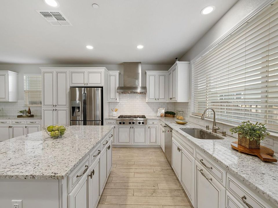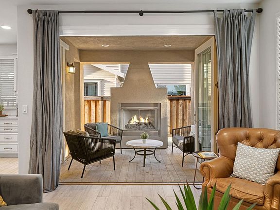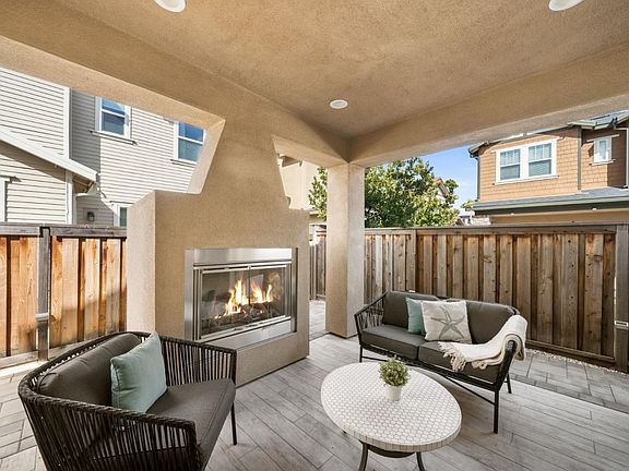 Welcome to this stunning Modern Heritage Park Luxury Home built by Pulte, only 7 years young and situated on a coveted corner lot. Boasting 4 Beds/2.5 Baths and an open floor plan, this home is the epitome of quality craftsmanship. Step into the chef's kitchen, complete with white cabinetry, high-end stainless steel appliances, a gas range, granite countertops, and a spacious island. The California Patio upgrade offers a seamless transition from indoor to outdoor living, featuring a built-in gas fireplace, perfect for those cozy nights. The low maintenance backyard is ideal for relaxing or BBQs, and the 2-car garage has Tesla car charging and attached gym accessories. A separate laundry room upstairs provides added convenience. Enjoy easy access to the I-580, I-680, and BART, as well as the proximity to top-rated schools. Plus, located just across the street from the amazing Dublin Heritage Park and Dublin Ice Skating rink, this home offers the perfect blend of luxury, comfort & fun.