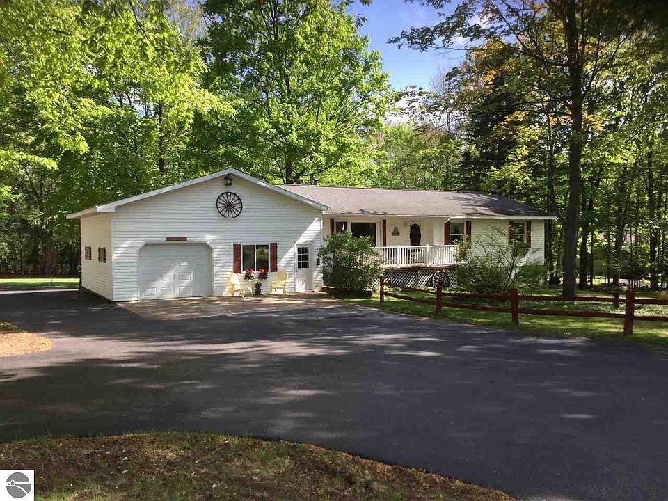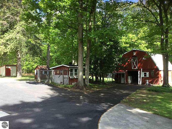 Looking for a nice home with buildings for storage, agricultural use or home business? Don't miss this. 60x40, 2-story barn w/heated shop; 34x26 barn w/loft,stalls & tack room/office; 22x20 detached garge & more. Large covered deck off the back overlooking the pond w/waterfall, landscaped yard & woods. Ag animals 'ok' (grandfathered in). This house was built to last like a farmhouse with lots of wood/woodwork & room for plenty. Central Air, Charter Cable, Natural Gas. Addl. buildings are chicken coop/laundry shed, corn crib, 8x10 storage shed w/cement floor. 5 min to Lake Ann & 15 min to downtown Traverse City. BR 4 in LL is non-conforming.