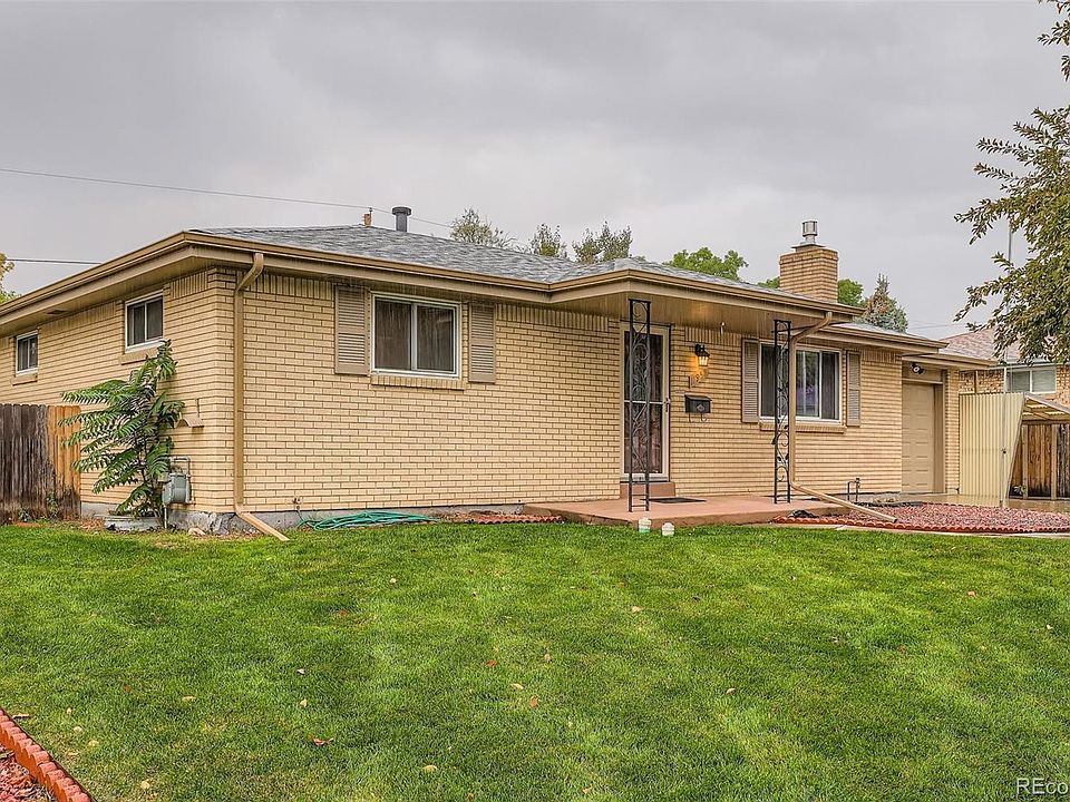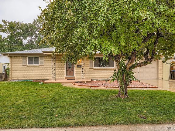 Welcome home to this solid brick ranch close to Olde Town Arvada in the desirable Allendale area of West-Central Arvada! Warm and inviting one-level living that is move-in ready! Gleaming HW floors throughout the formal areas of the main level! The inviting front living room has a large window and a built-in bookshelf near the entry and coat closet! Upgraded kitchen with newer traditional-style cabinets plus quartz counters! The included kitchen appliances are the range/oven, refrigerator and dishwasher! The kitchen overlooks an enclosed patio/sunroom offering a wonderful place for conversations and coffee! A small formal dining room offers an area for entertaining guests! The main-level primary bedroom includes dual windows and a ceiling fan! A second main-level bedroom is adjacent to the full hall bath! A large open family room in the basement has a gas FP and traditional paneling! Two non-conforming bedrooms in the basement share a three-quarter bath! The full-size side-by-side washer and dryer are included! There is also a large basement utility room that also has additional storage! Enjoy time in private park-like yard with a large cobblestone-like patio and an attached shed! Single car garage plus a small carport! Solar panels, too! You will fall in love with this inviting, well-maintained home and its cozy mauve paint scheme! Estate sale. Property is being sold AS-IS.