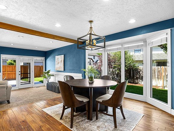 Welcome to this expansive five-bedroom, three-and-a-half-bathroom residence spanning approximately 3,790 sq ft in a coveted neighborhood. This turn-key home features a new furnace and boasts a Wolf gas stove in the spacious kitchen with counter space galore perfect for culinary enthusiasts. Enjoy abundant natural light throughout, complemented by a cozy fireplace in the living room. Downstairs, discover versatile entertainment spaces, including a theater room with pre-installed speaker plug-ins and a walk-out patio ideal for outdoor gatherings. The covered patio overlooks a landscaped backyard with a workshop/studio wired for internet, offering a perfect retreat or office space. With a heated garage for Idaho winters, and located just minutes from walkable schools, shops, and a short 8-minute drive to The Village, this home offers convenience and luxury in the heart of the valley. Schedule your private showing today to experience all this home has to offer!