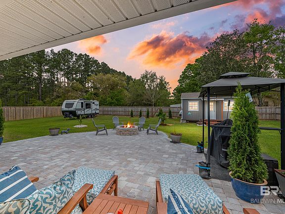 River Place community in Fairhope offers a serene and a spacious living experience without the constraints of an HOA. This Craftsman brick home is rich in features. Upon entering the front door you have an open floor plan, with formal dining room on the left and office/living room on right, then step into the Great room, with large windows with a view of the backyard. The adjacent kitchen boasts soft closed cabinets with granite countertops. Kitchen features Frigidaire appliances, (excluding the refrigerator, it will not convey.) Amble laundry room, off kitchen, with door to the garage. The washer and dryer will not convey. Large main bedroom has room for your Cali King. Main bath has double sinks, soft close cabinets, garden tub, shower has built-in seat, and his and hers walk-in closets. It has split floor plan with 3 additional bedrooms and a bathroom. All living areas are LVP luxury vinyl plank, bedrooms are carpeted. The home features windows that tilt for easy cleaning. The two-car garage has side entry, with remote control garage door.This home sits on .46 of an acre, and the landscaping has been updates with a 30X30 paver patio that has a firepit. The back patio is stained (not painted) with a fan and electric outlets on both sides. The 20X12 shed will convey. The yard is fenced with multiple gates and with one large enough to fit your RV in the backyard. Overall, this home in the River Place community offers a blend of comfort, functionality, and charm, making it a desirable place to call home in Fairhope! Professional photos will be loaded between April 2-5.