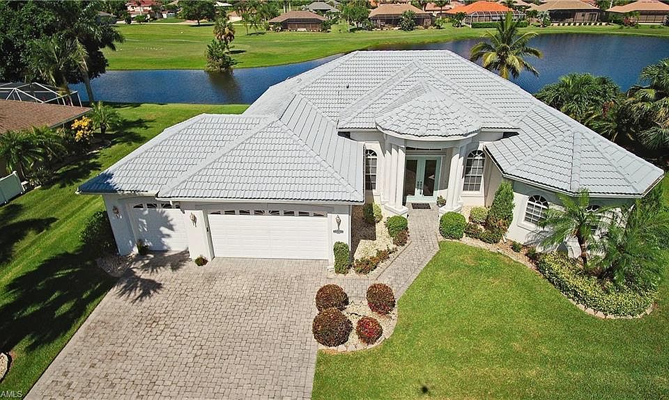 Gorgeous sunset view pool home with a view of the lake and golf course! Meticulously maintained and custom built with a tile roof and lush landscaping on one of the most sought after interior streets in Cape Royal. This home boasts a large three car garage, 8 foot sliders, mitered glass picture window in the breakfast room, soaring ceilings and spacious great room. The master bedroom is very large with two walk-in closets. The fabulous master bath has a walk-thru shower and separate large jetted tub. The back bedroom is very large and is currently being used as a office/game room. Expansive lanai with a sparkling heated pool. Extraordinary sunset views overlooking the lake and golf course that is great for entertaining. The entire home has hurricane protection and a well for irrigation=super low water bills! Cape Royal is a premier gated Golf Club community with low dues. Also you located in unincorporated Lee County for lower taxes. Check out the virtual tour for this home. This beautiful home is a must see!