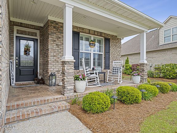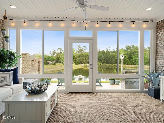 Experience the ease of coastal living in this wonderful Palmetto Creek low maintenance townhome enjoying breath taking views of the large pond! The gated community of Palmetto Creek offers first class amenities and a central location to the sandy beaches of Oak Island, Shallotte, and Southport. A decorative stamped concrete rocking chair front porch with stacked stone accents welcomes you into a bright and cozy foyer with detailed wainscoting. Lovely hardwood flooring leads you into the inviting open concept living space combining the formal dining area, great room, kitchen, and breakfast area. The great room features an octagon shaped tray ceiling with a shiplap design and a gas fireplace surrounded by custom built-in shelving. Friends and family can take a seat at the kitchen island's raised bar and enjoy the open floor plan. The pristine kitchen includes stainless steel appliances, granite countertops, an abundance of cabinet storage, a pantry, secondary pantry in the laundry room, and access to the laundry room with additional storage and the 2-car garage. Sunlight spills into the entire living area through sliding doors leading to a fabulous heated/cooled sunroom with exposed brick walls and gorgeous pond views. Step onto the stamped/stained concrete patio to soak in the pond and bordering nature views. Back indoors, you will find another retreat in the master bedroom featuring a tray ceiling, large walk-in closet with a desk area and built-in-shelving, and a spa-like en suite bathroom. The en suite bathroom includes a dual sink vanity, linen closet, and a tiled walk-in shower with a mounted shower head and a handheld sprayer, corner seat, and frameless glass door. Two spacious guest bedrooms and a hall bathroom complete the home. Palmetto Creek offers residents and their guests' wonderful amenities which include a zero-entry community pool, a party centric clubhouse, tennis court, fitness center, kayak launch, and putting green.