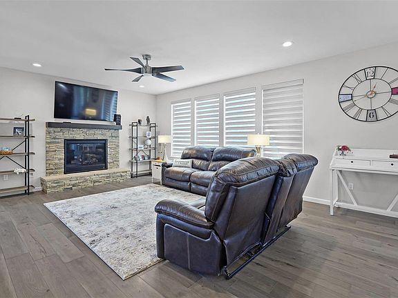 Beautiful home built by Consort Homes. Sierra Ranch elevation, amazing wide open floorplan, Gourmet kitchen with Frigidaire professional series appliances. Convection oven with air fry and convection microwave, beautiful quartz counter, upgraded 42-inch cabinets dovetailed with close. Cultured stone gas FP with raised hearth. luxury plank vinyl and LV tile flooring. Remote shades in Lvroom. Insulated 3 car garage.Custom master bath with os walk-in shower, a Fenced yard, a 20x12 covered patio, and a hot tub. Partially finished lower level with family room, rec room, bedroom, and full bath. Move-in ready !! A must see!!!