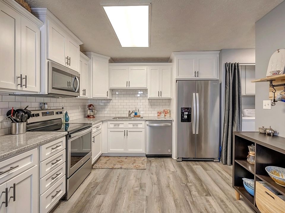 What a beauty! This three bedroom, one and a half bath condo has been TOTALLY UPDATED and is MOVE-IN READY! The kitchen is sleek and modern with gorgeous white Shaker-style cabinets, stainless appliances, and beautiful, maintenance-free flooring. The same flooring flows throughout the spacious living room, the dining room, and all three bedrooms. Both bathrooms feature stylish tile floors as well as other on-trend cabinetry. Recent updates include a new roof in 2021 (HOA paid for this) and new furnace and A/C in August 2021, additional insulation added in the garage attic, and a new washer and dryer. The garage floor is epoxied which allows for easy clean-up and a sleek look. The exterior has a variety of Hostas and other perennials in the flower beds making the exterior look as cheery as the interior. Schedule your personal tour today and be prepared to fall in love! Only TWO hours' advance notice needed for showings on 7/23 and 7/24. Sellers are interested in selling a lot of their personal property too in a separate bill of sale. NOTES: Sellers would love to have possession through August 29th. Sellers will review any/all Offers on Monday evening, July 25th. Offers to have a response time of noon on Tuesday, July 26th.