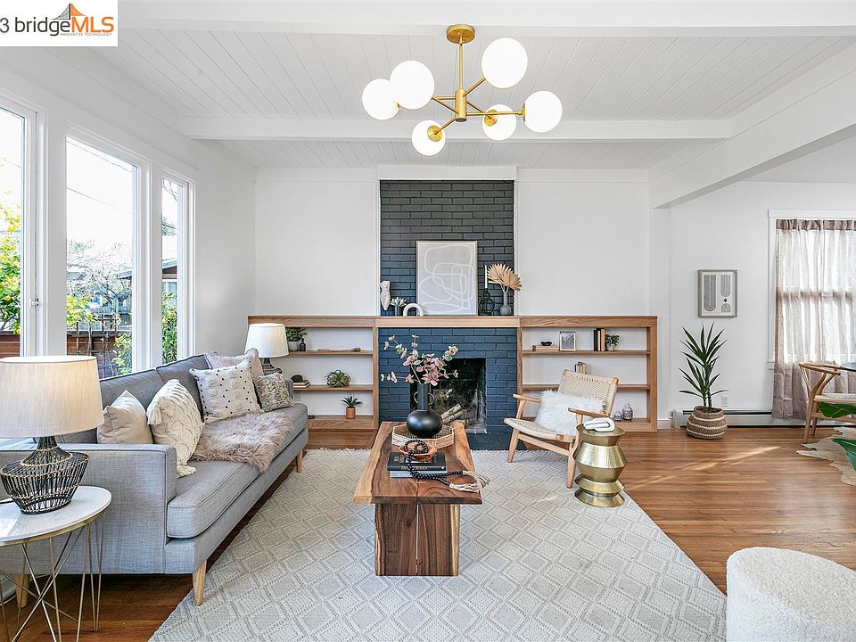 Modern, Bohemian bungalow with design-forward updates, two decks, and a mini-urban farm with 6 fruit trees and 4 raised veggie beds. This open and bright 2 bedroom, 1 bath gem has just the right designer touches: handmade tile from Spain, handspun ceramic lights from India, custom-crafted solid oak built-ins around the fireplace, and wallpaper to make you swoon. Sit back on your deck with your beverage of choice in your private sanctuary, soaking up the sun and gazing at your weekly harvest of veggies, figs, plums, citrus, and sour cherries. A lot of seller improvements over the years, including seismic upgrades, structural foundation work, updated kitchen (Bertazzoni, Bosch, Fisher & Paykel appliances), updated bath, energy-efficient tankless water heater, and hydronic baseboard radiant heating. One small off-street parking spot (behind gates) that the current owner uses periodically for her car, usually when traveling. What a perfect location, just two doors down from the Albany border, 3 blocks from Solano Avenue, and close to everything the Gillman District and Westbrae neighborhood have to offer: Fieldwork Brewing, Whole Foods, Philz Coffee, Lulu, Acme Bread, and Westbrae Biergarten. Don't miss it.
