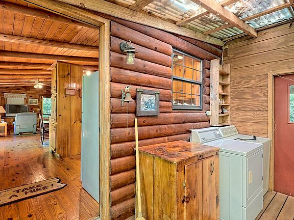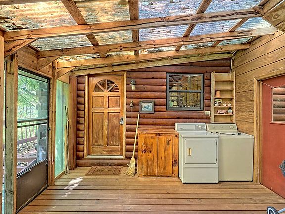 Spend your days tucked into this TRUE MOUNTAIN cozy log home on nearly 7 unrestricted acres. 3 bedrooms/2.5 baths. 2 bedrooms and 2 bathrooms on the main level. Upstairs features a loft with an additional half bath. Pine floors and wood walls give you that TRUE cabin feel. Living room featuring a wood burning stove perfect for the crisp fall air and built in shelving for extra storage. Metal roof for easy maintenance. Deck AND a screened in porch perfect for entertaining. Several outbuildings allowing outdoor activities of your choosing. Need space for an ATV? You will have that. Want to set up a fence and live off the land with a garden and some chickens? You can have that as well. All of this and I haven't even gotten to the creek....You can hear it from the deck.