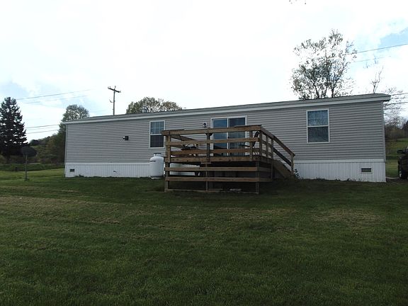 JUST LIKE NEW...but even better 2019 16' x 56' single wide mobile home on 20 surveyed mostly open acres. Immaculate home features large living room with newer pellet stove, 2 bedrooms at either end of the home for privacy. Kitchen with stove and refrigerator and sliding glass doors that lead to a pressure treated deck. Full bath. Washer & Dryer. Spring fed pond, apples trees and an amazing VIEW. Barn needs some TLC but seller said it is solid. Long road frontage on two roads so could be divided into separate parcels if you wish. Plant an amazing garden, have a few chickens or goats.! Nice getaway for weekends or year round living. Close to town and churches, not far from NYS Rte 88.