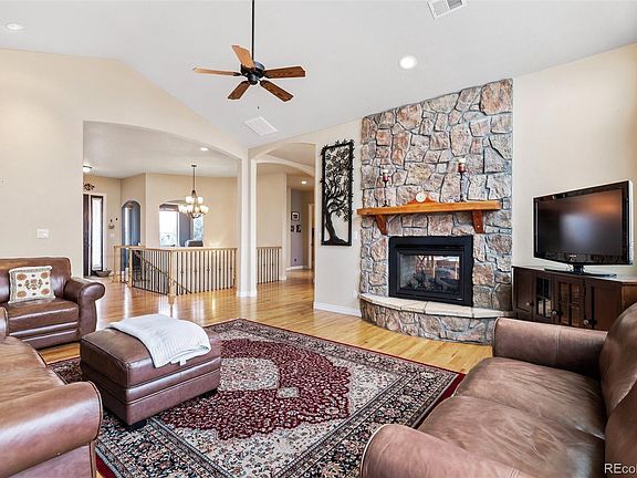 Very low maintenance, large estate lot, AND a custom designed, remodeled, over-engineered home, with unobstructed views, AND a sought after subdivision. You will want to see this move-in ready 5 bed, 5 bath, main floor primary suite and laundry, secondary suite with private bath, sun-lit raised ranch with open concept kitchen, vaulted ceilings, walk-out basement (10 foot ceilings), new hardwood floors, new carpet, new paint, new trim, new furnace, new hot water heater, new vessel sinks, even a new front door and sidelights. The 5th bedroom with 1/2 bath on the main floor with double door entry would make a great office and was originally designed with that in mind. Don't miss the DETAILS like a 2-sided fireplace, sound proofing to living room from Primary bedroom, 5 piece bath with great soaking tub, immense 13x10 walk-in closet, 400 square foot storage room, 3 car finished garage with running water and 9' doors with overhead space, Gas line to deck for BBQ, whole house fan, 2 High efficiency HVAC systems with A/C, wood fenced backyard which could be greatly enlarged to property lines, and the home is built directly on bedrock with 2x6 construction. This is a quiet cul-de-sac road, town maintained with only $134 a year HOA with access to private valley, no metro district. Road to left is blocked off for use for emergency vehicles only. Only a few houses past this home, so very few cars will drive by. Pictures and the virtual tour with furniture were from before the remodel to help show the large room sizes and open layout. Don't miss seeing this home.