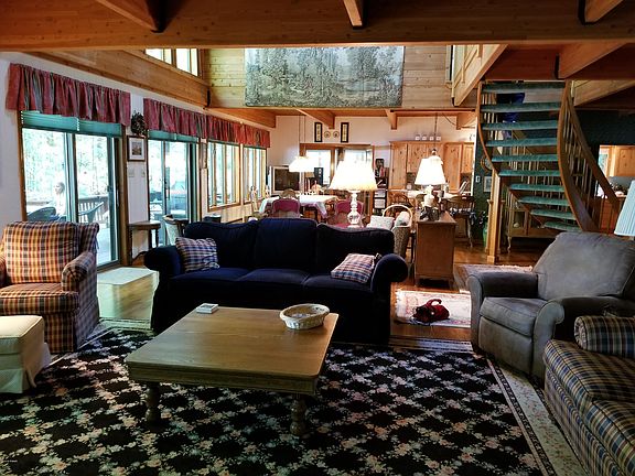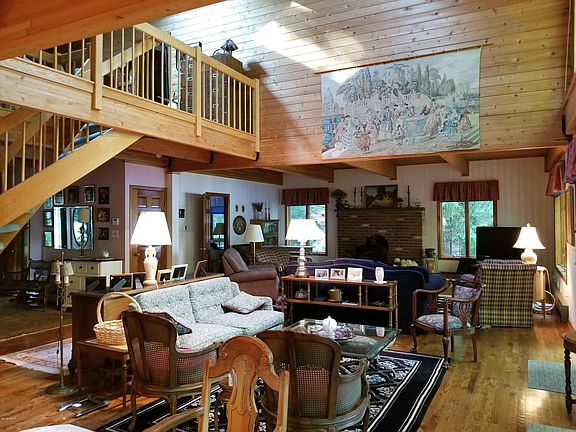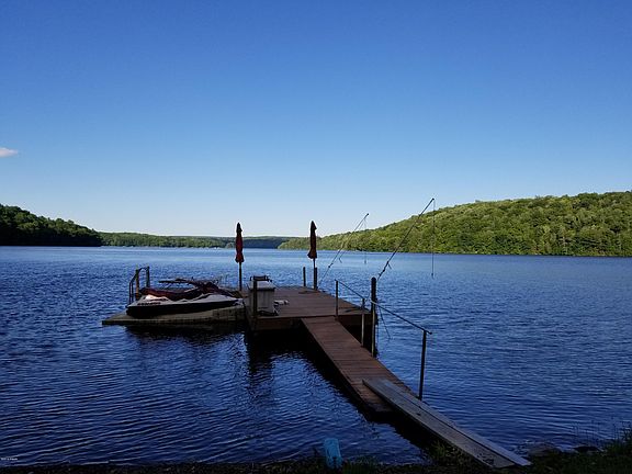 Lake Wallenpaupack Elegant Lakefront with Panoramic Views. Large open floor plan great for entertaining. This big and beautiful home features 4 Bedrooms and 3 full bathrooms, Tongue and Groove detail, expansive Living Area with Glass Facade, Cathedral Ceilings and Fireplace. Enjoy Entertainment size Dining Area with amazing lake views. Gourmet Kitchen, Central AC, rec room, full basement and two car garage. Lots of storage for all your toys. Comes complete with dock, 100' of lake frontage, nice level lot with convenient lake access and expansive deck.