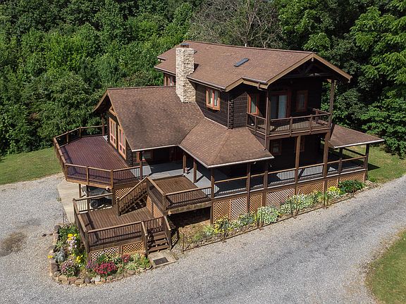 Welcome to Fox Ridge. This beautiful log home has it all with wrap around porch and balconies off the bedrooms. Very private setting with distant views of the Blue Ridge mountains and seasonal views of House Mountain. Detached garage with bonus apartment above that would be great for guests and a large workshop. Vegetable garden, fruit trees that include peach, plum, apple, strawberry patch. All situated on 12 plus acres. A Must See!!!