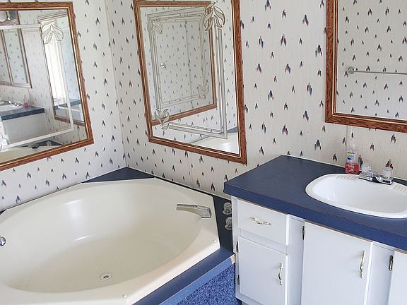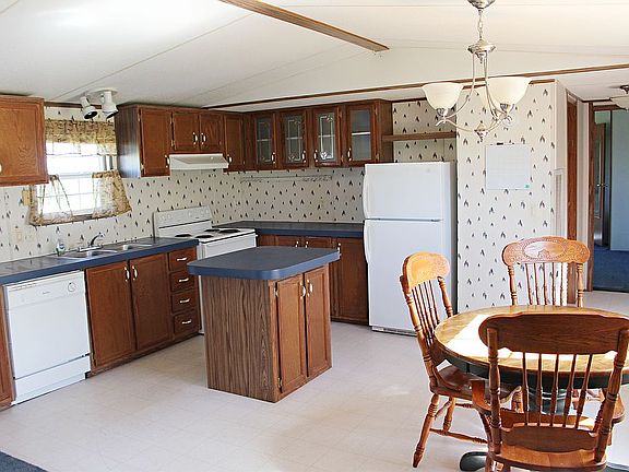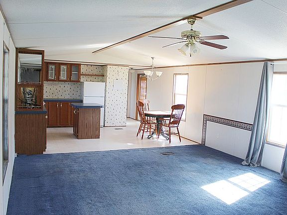 Enjoy panoramic mountain views from your own front porch! This manufactured home was lovingly cared for by a single owner who maintained the home well. This home has 3 bedroom, 2 bathrooms, open floor plan kitchen/dining/living space, and a laundry room with washer and dryer hookups. The master bedroom has a large walk-in closet and attached en-suite bathroom, which has a double sink vanity, soaker tub, and a separate stand alone shower. Kitchen comes equipped with refrigerator, stove, and dishwasher. When you walk out your front porch you will enjoy a large open yard with mature landscaping and river rock retaining wall. The covered front porch measures 10X18 ft., plenty of room for furniture and a grill. New roof in 2022. Behind the home is a cinderblock 28 x 36 ft. detached garage and a 2 car covered carport. There is also another small outbuilding for extra storage. There is a paved circle driveway around the garage for easy turnaround. The property backs up to a wooded lot. This lot offers plenty of space for outdoor activities or future expansions.