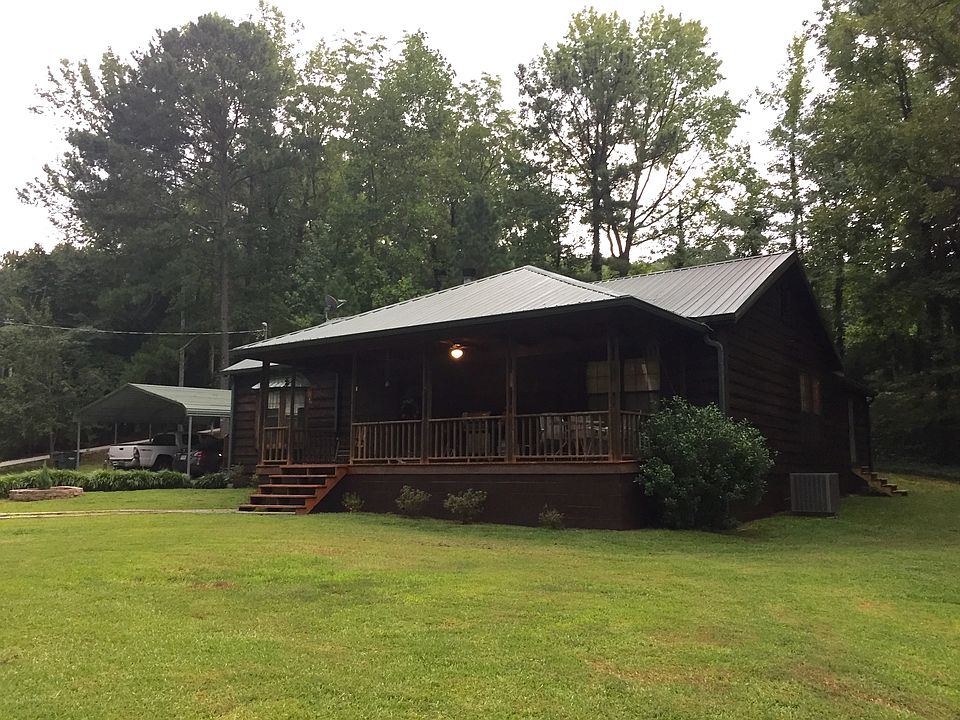 Built in the 1945, the home has been completely renovated and upgraded to modern standards. At just under 1800 sq feet, the home has three bedrooms, two baths, kitchen, dining, and utility/hobby room. The house sits on over 3 acres and includes a spring-fed stocked pond (fresh water year round). The property also has a large 20 x 20 workshop with two extended covered parking bays. The shop has an 8 gauge 240 volt electrical sub-panel suitable for high-current tools. Great home for a young family. House is zoned for Munford Schools, but located very close to Talladega for convenient shopping. Talladega National Forrest is less than one mile away from property. The northern property line borders a local hunting club. Great location for hunters and outdoorsman. Interior features: Completely renovated interior. All new mechanical (plumbing and electrical) Kitchen features solid granite countertops with large under-mount sink, new cabinets, slate backsplash, and ceramic tile floor. Main bath has granite-top double basin sink, ceramic floor, and steel tub with ceramic surround. Master bath features tile floor and full 4x4 walk in tile shower. All ceilings feature rustic solid wood with exposed beams. All other floors are wood or solid-surface (no carpet). Exterior features: New Rheem 3.5 ton high efficiency heat-pump installed by local contractor (Barnes Heating and Air) in 2014. Solid 1x12 cedar siding. Easy to maintain with oil stain and very durable. Long life metal roof installed in 2012. Seamless gutters installed in 2012. New double-pane aluminum windows. New cedar facia boards (wrapped with metal) and vinyl soffits. In general the house has very low exterior maintenance. Utilities: Electrical power provided by Coosa Valley. High speed 7 MB Internet service available via AT&T U-Verse. Home is pre-wired with a DirecTV HD dish. Water provided by Talladega Water Authority (backup well with pump is also available).
