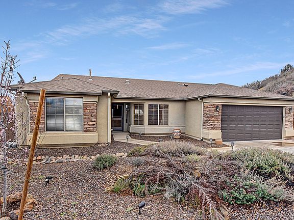 Wonderful home located near the end of the street. Home was built in 2005 and features many great features. Some of which include a gas fireplace, split bedroom floor plan, walk-in closet and a light cheery atmosphere. There is an informal eat-in kitchen along with a formal dining space if desired. The backyard is fenced with a covered patio, grass, a shed, mature tree and amazing views of the Mingus Mountains and Lonesome Valley area. The home also comes with a PAID IN FULL SOLAR SYSTEM! You'll enjoy incredibly low monthly bills. Don't miss this gem. You will love it!
