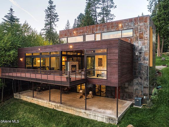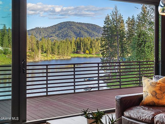 Spectacular waterfront home located in one of the most gorgeous settings anywhere in North Idaho. This home is truly one-of-a-kind, featuring a Scandanavian modern design and unmatched views over Avondale Lake towards Canfield Mountain. Two golf courses are on your doorstep, with shopping/services less than 10 minutes away, yet the peaceful setting feels far from everything. Comprehensive features list is available, with highlights that include a gorgeous ''art gallery'' entry with a 16' wrap-around glass curtain wall, Kalwall Skyroof over the entry & kitchen, walls of glass throughout the main level, radiant floor heating system with 10 zones, incredible energy efficiency, and an indoor/outdoor fireplace. The lake is perfect for paddle boarding, kayaking, fishing and even ice skating during the winter. Home is being sold fully furnished. Truly a must see!