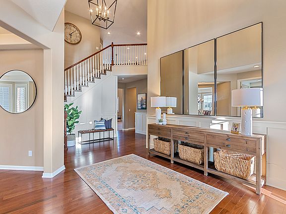 A true gem in Parker's coveted Idyllwilde community w/huge lots backing to open space preserve. A well apportioned Richmond Heather model home. A spectacular 2-story entry & formal living room, rich hardwood flooring, upgraded 8' doors, plantation shutters, upgraded LED lighting. A cooks delight is the gourmet kitchen featuring double ovens, gas cook top, slab granite counters, over-sized island, pantry, upgraded cabinetry with built-in desk, access to the covered deck, & dining area. The majestic 2-story family room is complete with great views of the open space, fireplace, built-ins, & wired surround sound. The master suite retreat is sure to please w/wonderful views of the open space, relaxing sitting area, plantation shutters, 3-sided fireplace, a terrific master bath w/tile flooring, slab granite, & huge walk-in closet. Garage cabinet storage, & wired for sound/cable. Idyllwilde has a terrific pool, clubhouse, Fika coffee,open space, trails, parks, short walk to middle-high school
