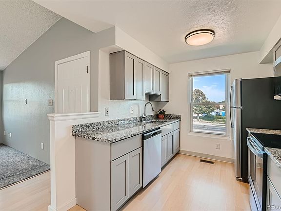 Welcome to 11961 Bellaire St, Unit H! This spacious and inviting condo is located in Thornton. This unit features an open floor plan with plenty of natural light, vaulted ceilings, and two generous bedrooms, including a private 3/4 bath and double closet in primary. Enjoy your cozy woodburning fireplace, perfect for relaxing or entertaining. The updated kitchen features new cabinets, granite counter tops, and stainless steel appliances. All appliances in the home are included. Step outside to your private balcony overlooking the tennis courts, perfect for morning coffee, or evening barbeques. Enjoy the convenience of the in-unit laundry, along with 2 designated parking spots, additional guest parking, and a personal storage closet outside of the unit. This community offers beautifully maintained grounds, an outdoor swimming pool, tennis courts and is close to parks, schools, and walking distance to restaurants and shopping.
