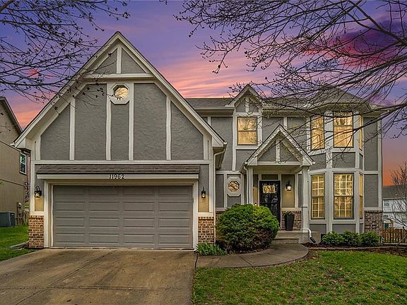This beautiful, two-story home is located in the desirable Heatherstone community in the Olathe School District. The quiet neighborhood boasts many amenities and is close to schools, shopping, highways and more! The main floor features a formal living room or office space with a gorgeous bay window and a formal dining room just off the kitchen. The kitchen is truly the hub of the home with a large peninsula with bar seating, stainless steel appliances, hardwood floors, and an adjoining hearth room with gas fireplace. Also adjoining the kitchen is a spacious, light and bright family room with gorgeous windows, a stone fireplace, and beautiful woodwork! The conveniently located main floor half bath has been recently updated and features new fixtures and a shiplap wall. Many areas of the home boast new paint and beautiful, updated light fixtures. Upstairs is a huge primary suite with a lighted, vaulted ceiling, a sitting area, and large primary bath with jetted tub, separate shower, double vanities, and a large walk-in closet. The laundry room is conveniently located on the bedroom level just off the primary suite. Also on the second floor are three additional nice-sized bedrooms with large closets and a full bath with a double vanity. The recently finished basement features a massive rec room with plush newer carpet, paint, and a beautiful wood beam. There is also a semi-finished room that could serve as an office, playroom, exercise room or storage space. The unfinished area boasts loads of additional storage. There is a patio off the hearth room that overlooks a large, partially fenced yard. The oversized two car garage has plenty of extra room for your outdoor equipment.