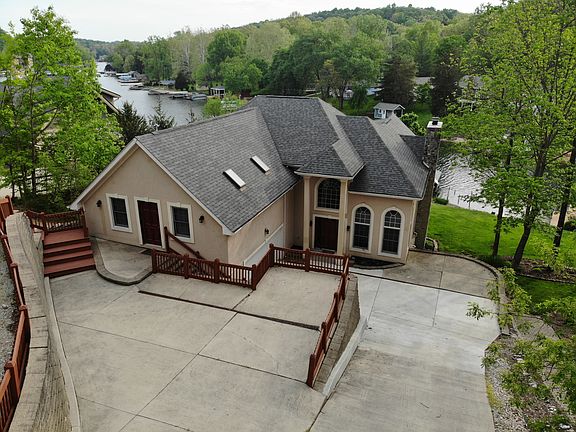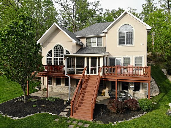 Does your family need lots of space to spread out? BIG PRICE REDUCTION! Large Grandview Lake home with over 4500SF, 5 bedrooms including bunk room, office and loft area, 2nd laundry, two living areas, formal dining, bar & rec space, screened porch, covered patio, attached garage, two docks and swimming beach on 82 FT shoreline, grassy lawn, irrigation system, refinished deck, big kitchen, master suite on main, 26 FT ceilings, hardwood floors- this lake house is move-ready and available for your summer fun! Plenty of room for family and guests to enjoy the largest private lake in Indiana!