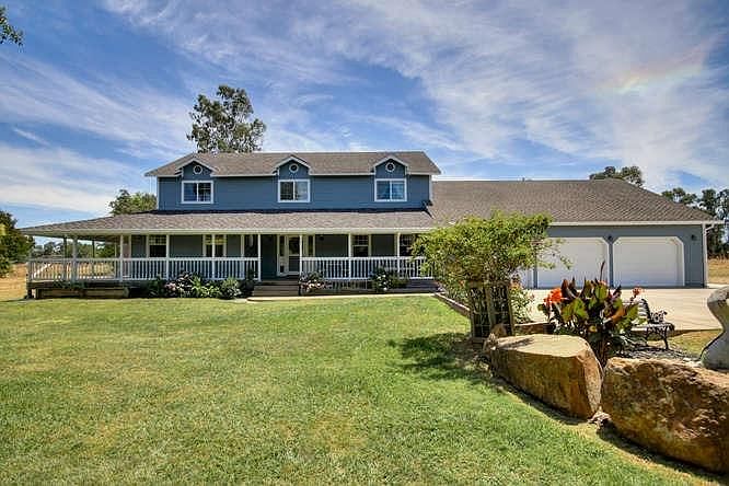 Spectacular 4 bed + office 3.5 bath farmhouse w/gorgeous wrap around porch on just under 5 acre lot. This hidden gem is located at the end of a secluded tree-lined driveway overlooking a serene year round pond. Recently remodeled kitchen w/huge center island, stainless steel appliances, quartz counters, & bright white cabinets complete w/glass fronts, build-in desk, & wine rack, engineered hardwood flooring. Adjacent mudroom offers additional pantry space & room for second fridge/freezer! Spacious living room w/rock wood burn fireplace w/gas w/heat duct pass through & blower & slider access to side porch, formal dining room, downstairs office could be used as 5th bedroom, downstairs full bath w/standing shower & handcrafted redwood countertop. Master suite w/walk in closet & bath w/dual sinks, separate shower & soak bath. 2 HVAC systems/zones. 3 car garage, adjoining storage room/workshop, paved RV/boat parking, garden in back w/planting & supply shed. Indoor laundry room w/cabinets, sink, & fold counter. THIS HOUSE IS A MUST SEE!