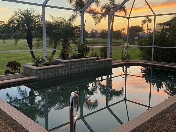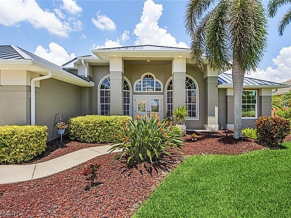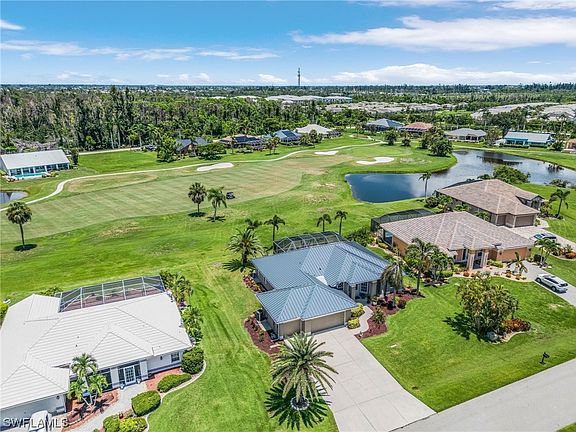 One of the best kept secrets in the greater Fort Myers area, Cape Royal offers a gated enclave just minutes away from all the best of what Southwest Florida offers. Nestled among million dollar homes, 11964 King James Court features 4 bedrooms, 2 bathrooms, 3-car garage and salt water pool, covered patio & lanai. This updated David Weekley, one-story offers a tropical paradise with panoramic views of lakes, wildlife and stunning golf views of the Cape Royal King 6th Fairway. Cape Royal features 27 holes of championship golf, designed by golf course architect Gordon Lewis. Experience an active lifestyle in the nearby Cape Royal Caloosa Club Restaurant; plus pickleball, tennis, bocce, social events, and Bridge, Mahjong Club, and Euchre. Store your golf cart or boat in the oversized 3-car garage with epoxy floors. Boaters will enjoy access to 3 boat ramps within 3 miles. Updates include new metal roof, interior & exterior paint & more. See agent for a more extensive list of updates. Open concept floor plan is perfect for entertaining friends & family. Oversized primary suite--with 2 walk-in closets--overlooks the golf course . Only 28 miles to Southwest Florida Airport (RSW) and only 20 miles to Punta Gorda Airport (PGD). Over the course of the year, Weather Spark reports that Cape Coral temperatures typically vary from 56°F to 91°F and are rarely below 44°F or above 94°F. Low annual HOA dues. Enjoy lower taxes because you will be in unincorporated Lee County.