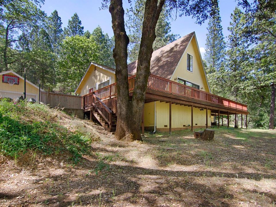 Welcome Home to just what you have been looking for! Sweet home in Alta Sierra on over two acres of lovely property just waiting for you. Tranquil setting with the perfect amount of privacy, trees, sun, and potential. Enjoy the outdoors on a large deck or sit in the garden amongst the fruit trees and chicken coop awaiting your chickens. Nice home with two bedrooms, two baths on the main level and another bedroom upstairs with loft area that could be bedroom, office, etc. Cute, clean, and ready for you to call home!Don't wait...this one will not last.