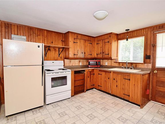 YOU'LL LOVE the 60 Acres of Hunting property and two lakes to fish at Ware Lake! Cute 2 Bedroom ranch on a beautiful level lot! Lots of thick wood paneling and fireplace make this the perfect weekend getaway or full-time home! Some newer flooring in the bedrooms and it has had a few updates in the last few years. The lot is very level and wooded in the back. There is a screened in porch, covered front porch and utility/storage room attached as well. Storage shed can stay too! Move right in and start enjoying the lake and the quiet setting!