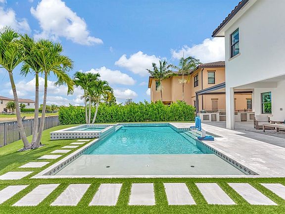 Blending luxury and comfort on a quarter-acre lot in a cul-de-sac. This property features a long driveway for ample parking and great curb appeal. Inside, enjoy an open floor plan and an upgraded kitchen with granite countertops and Monogram appliances. The first floor has an en suite guest bedroom, while the second floor includes a master suite with a walk-in closet, three additional bedrooms, and a loft. The master bathroom offers double vanities and a walk-through shower. Outdoors, discover a private oasis with a kitchen featuring a Big Green Egg, DCS grill, and sink under a pergola—perfect for dining. Relax in the 17x38 feet saltwater pool with gas heating or unwind in the 10x6 feet spa. Additional features include a 3-car garage with epoxy floors and cabinets.