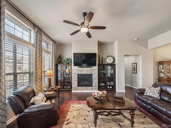 Meticulously maintained and gorgeously appointed, this 3 bedroom, 2 full bathroom, ranch style home has been tastefully updated in so many ways! The main floor features gorgeous wood floors throughout the living areas, high ceilings, coffered ceilings in the entry, dining room, and primary bedroom, as well as crown molding in the dining room and primary bedroom. The gourmet kitchen is complete with a large island, granite counters, staggered upper cabinets, lower cabinets with pull-out drawers, a gas cooktop, and a spacious pantry. The kitchen is open to the large family room with a gas fireplace and also to the dining room which maximizes the open concept yet cozy feel. There is also an eating area off the kitchen with access to the professionally landscaped backyard and patio area with room to relax and enjoy what Colorado life has to offer! The main floor is equipped with the generously sized, tranquil, primary bedroom with an oversized primary bathroom including double vanities, corner tub, separate shower, and a good sized walk-in closet. Finishing off the main floor you will find a guest bedroom, the spacious third bedroom (non-conforming) with double doors that is currently being used as an office, a full bathroom, and the laundry room leading out to the large 3 car tandem garage. Head down to the basement where one will find high ceilings and a wide open layout, with plenty of room for storage, or for your finishing touches just waiting to be designed and completed! This home is conveniently located near schools, an abundance of trails, the neighborhood FIKA coffee house, and just minutes to downtown Parker for shopping, restaurants, and the PACE center.