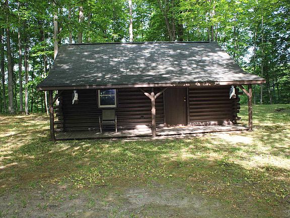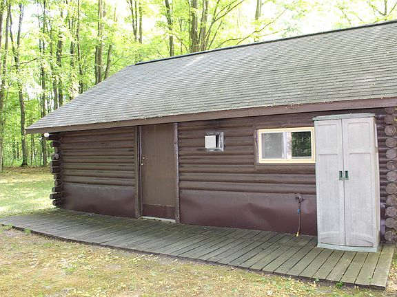Very private and secluded full log Get-a-Way in the woods. Made from 7" Logs which are fully exposed and give the rustic one room cabin a truly large feel. There are ATV/ORV and snowmobile trails nearby. Lakes, Rivers and state land close to explore and fish. I am told there is an underground phone line so internet may be possible. There is electricity so you can cook and gas to keep you warm but you will need to bring your own water. Comes fully furnished with a full-size bed, pull out sofa, dishes, beautiful Hickory cabinets, the kitchen sink and a deluxe outhouse! Sorry but the Mounts and a couple other items will not be staying.