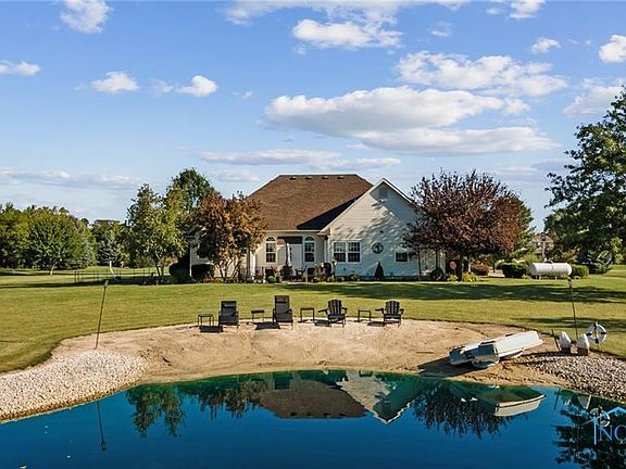 Behold this custom-built ranch on 2.75 Acres with an amazing pond that has beach area! Spacious open view concept! Family room with Fireplace and pond views! Kitchen has been remodeled with quartz countertops, new cabinetry, and floors! Stainless appliances stay! Bright and sunny eat in area plus formal dining! Private Office Room/Den has vaulted ceiling and barn door opening! New windows 2022! Spacious Primary Suite has been updated with separate soaking tub/walk in shower and double vanity! Walk in closet! First floor laundry! Full size basement! Open Relaxing Rural Views!