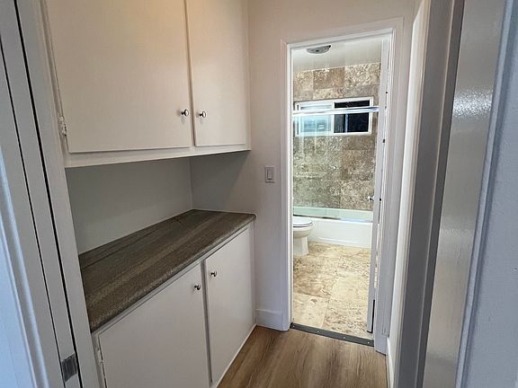 This completely remodeled 1 bedroom, 1 bath has a lot of natural light. Located on the 2nd floor of a 2 story building. Brand new hardwood floors, new kitchen and appliances. AC units in both the bedroom and living room. Has a long, private balcony. Comes with 1 parking space in the rear carport. Building is controlled access.