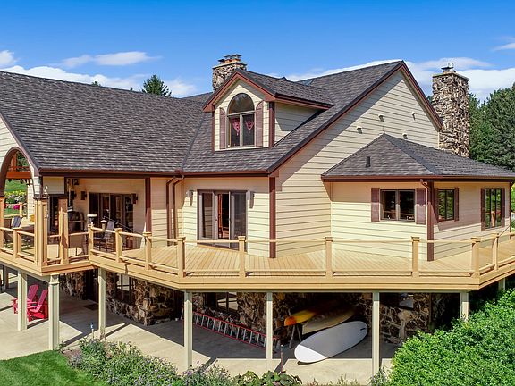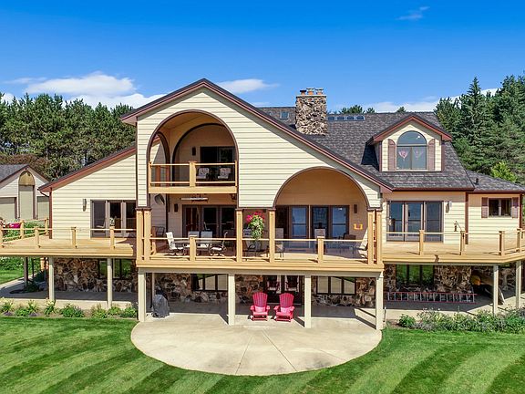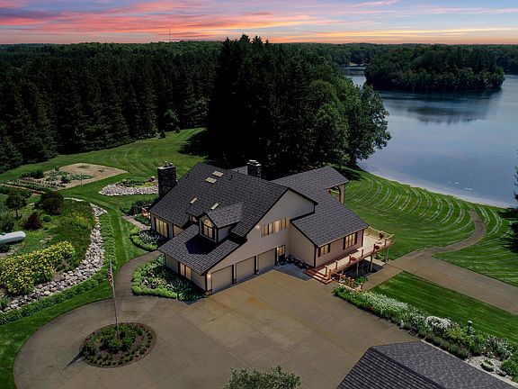 If there were ONE home on Big Lake to define luxurious lakefront living- THIS is the home! 8,000+ ft. masterpiece situated on 6+ acres with 320 feet of frontage on one of the most pristine lakes in northern Michigan. The main floor features 2 living spaces, 3 dining areas, 2 fireplaces, massive composite wrap around deck, and beautiful kitchen. Master en-suite has balcony access with incredible lake views. Upstairs you'll find 3 beds/3baths, an elegant library and balcony. The walkout level features 2 beds/2baths, huge rec room, full kitchen, 3rd fireplace, and a wonderful stone patio. Attached 3 stall garage/unattached 3 stall garage, geothermal heat, and brand new ($100k) steel shingled roof. Spectacular view on all levels AND landscaping is master gardener approved! Contents negotiable